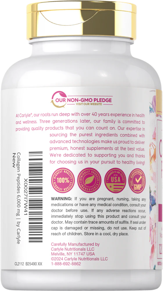 Carlyle has used an advanced formula to craft a gorgeous, Hydrolyzed Collagen Supplement. Our Super Collagen + C includes Types 1 & 3 and delivers an impressive spectrum of Amino Acids with Vitamin C. In addition, it's derived from grass fed peptides, nurtured to deliver cutting-edge nutrition. Our Coated Caplets offer potent support for men and women. Great on-the-go and easy to take with water or your favorite drink. Add our Super Collagen to your collection of Vitamins today and experience the difference!